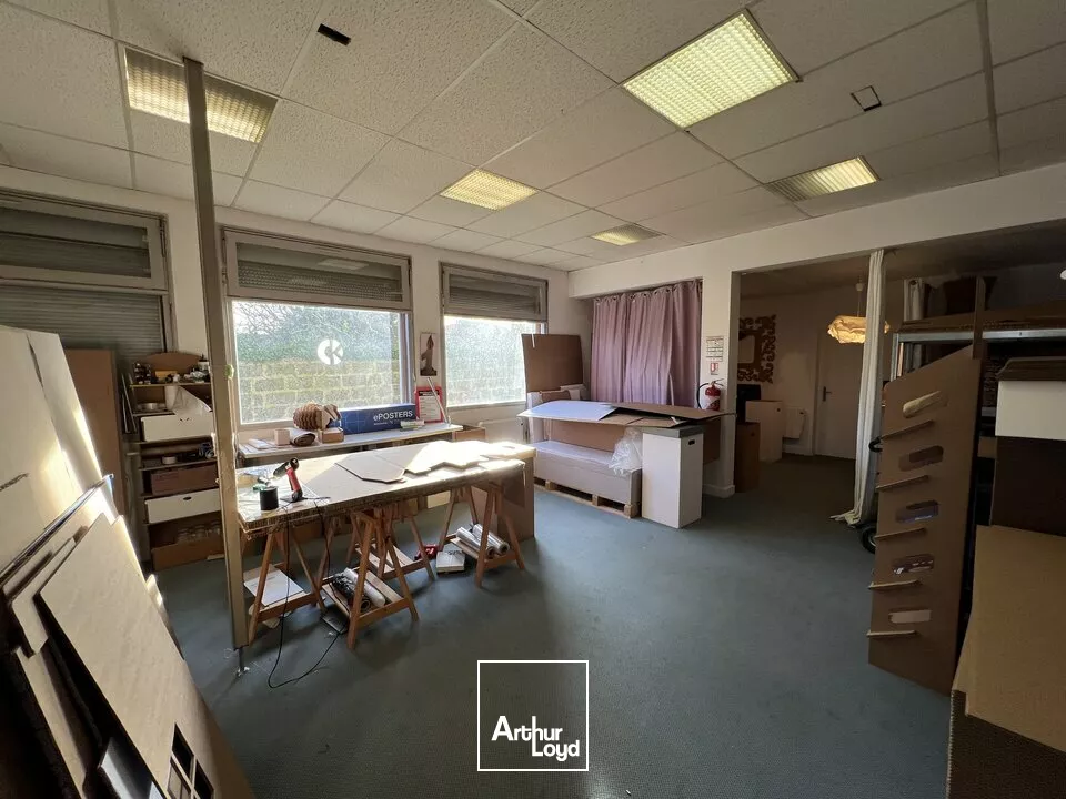 D'une surface totale de 123 m² les bureaux se composent d'une grande pièce principale (bureau en open-space) et d'une seconde pièce sur l'arrière avec salle de pause, kitchenette et sanitaires (1 WC et 1 douche).