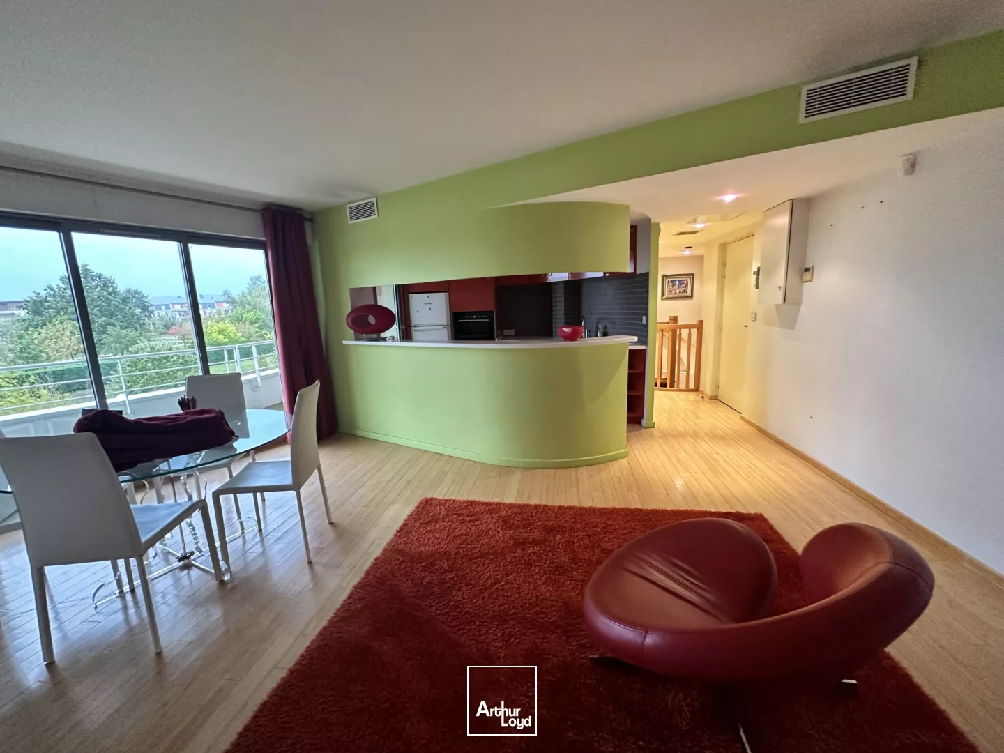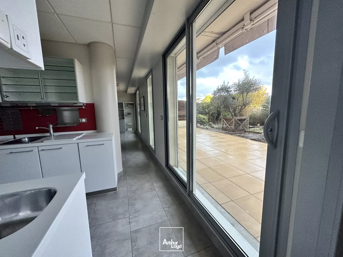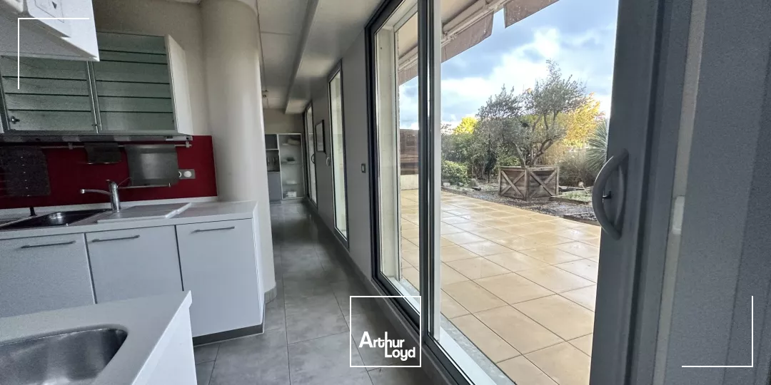 Grande terrasse privative au rez-de-chaussée et un balcon sur toute la longueur.