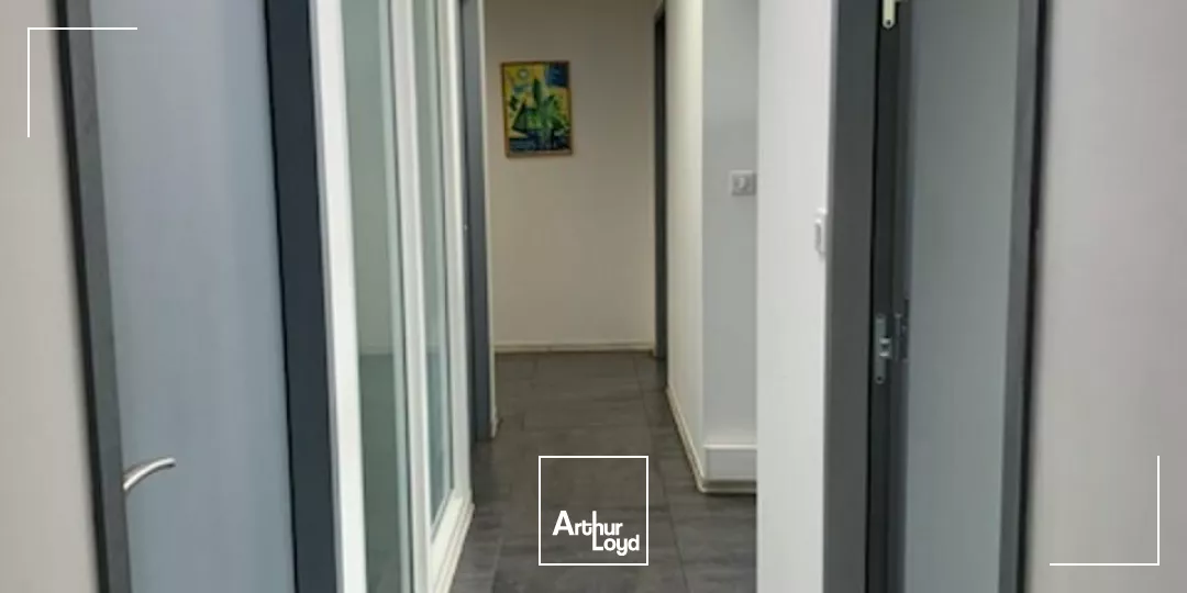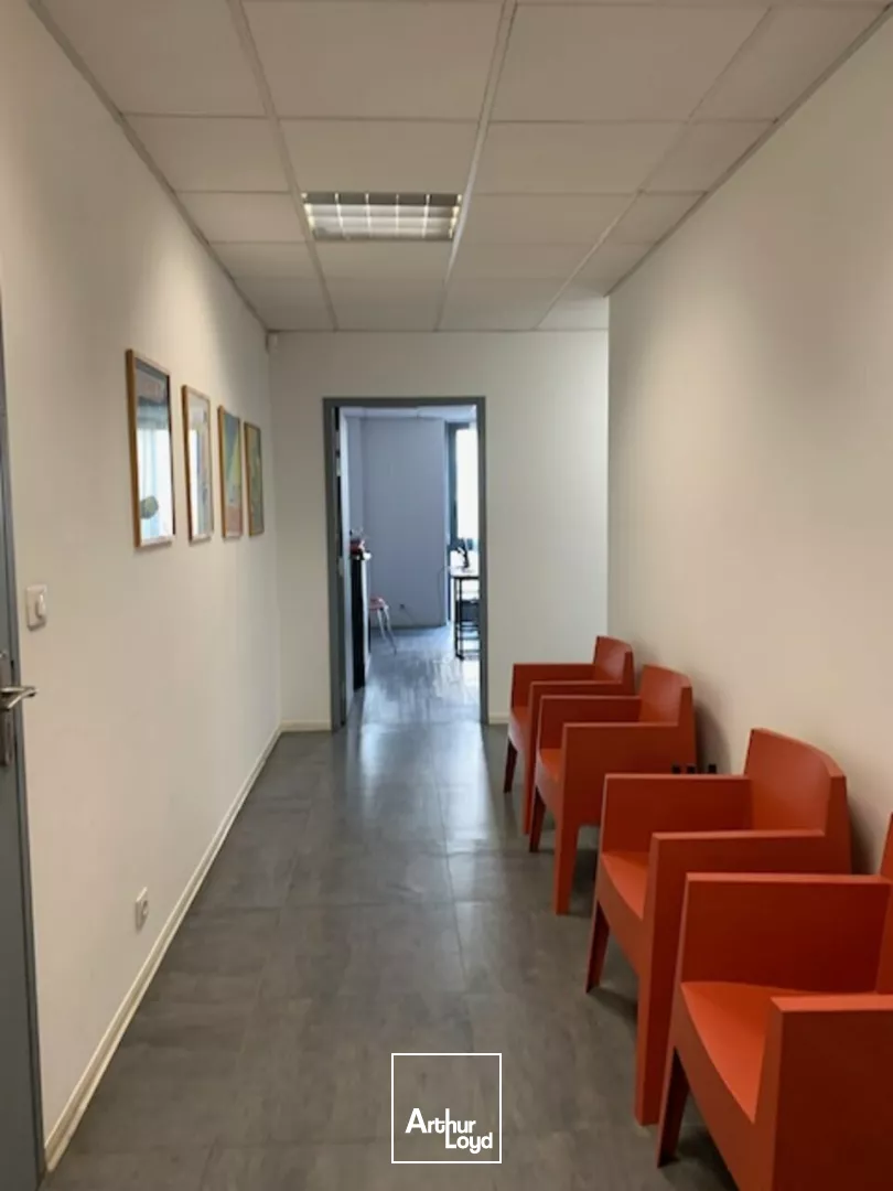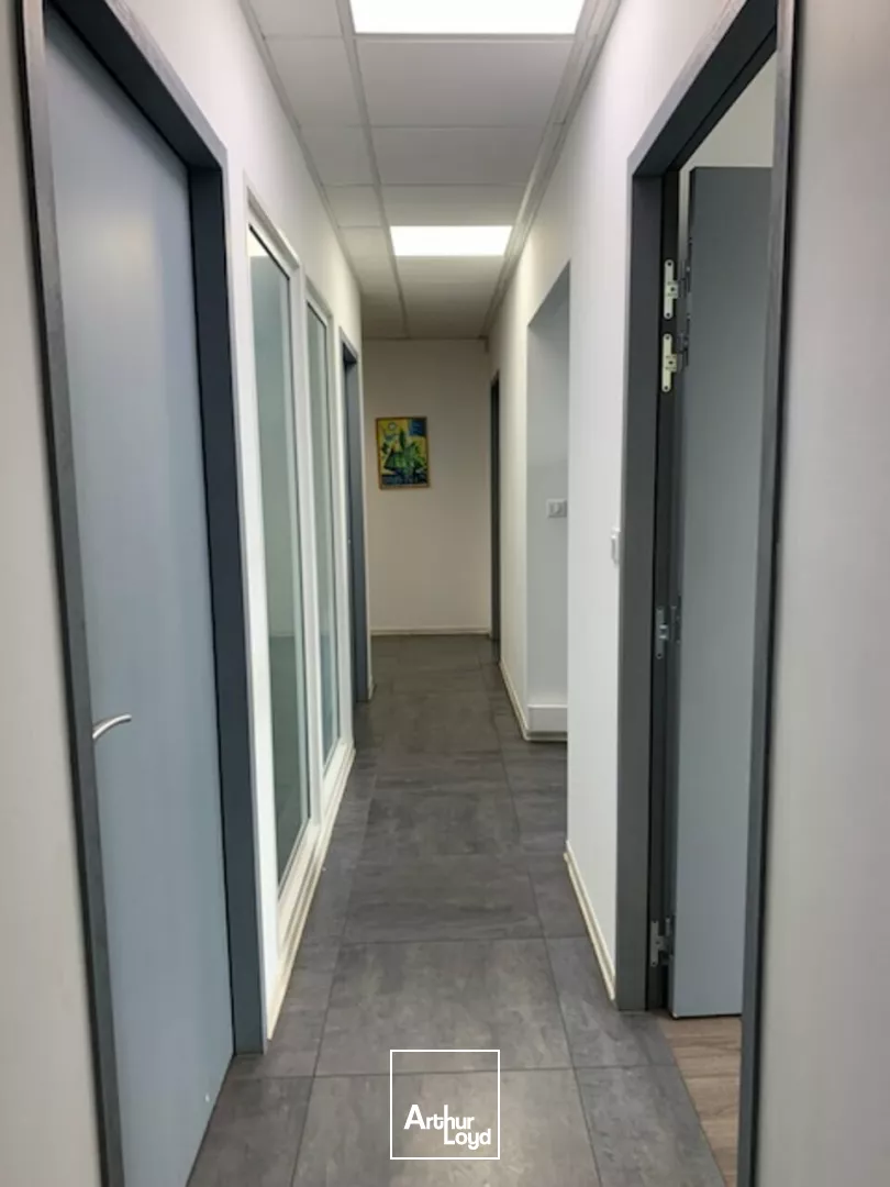 4 grands bureaux + salle de réunion + 4 pièces d'archives + 2 WC + 1 coin cuisine tout en cloisons modulables offrant des possibilités de modifications.