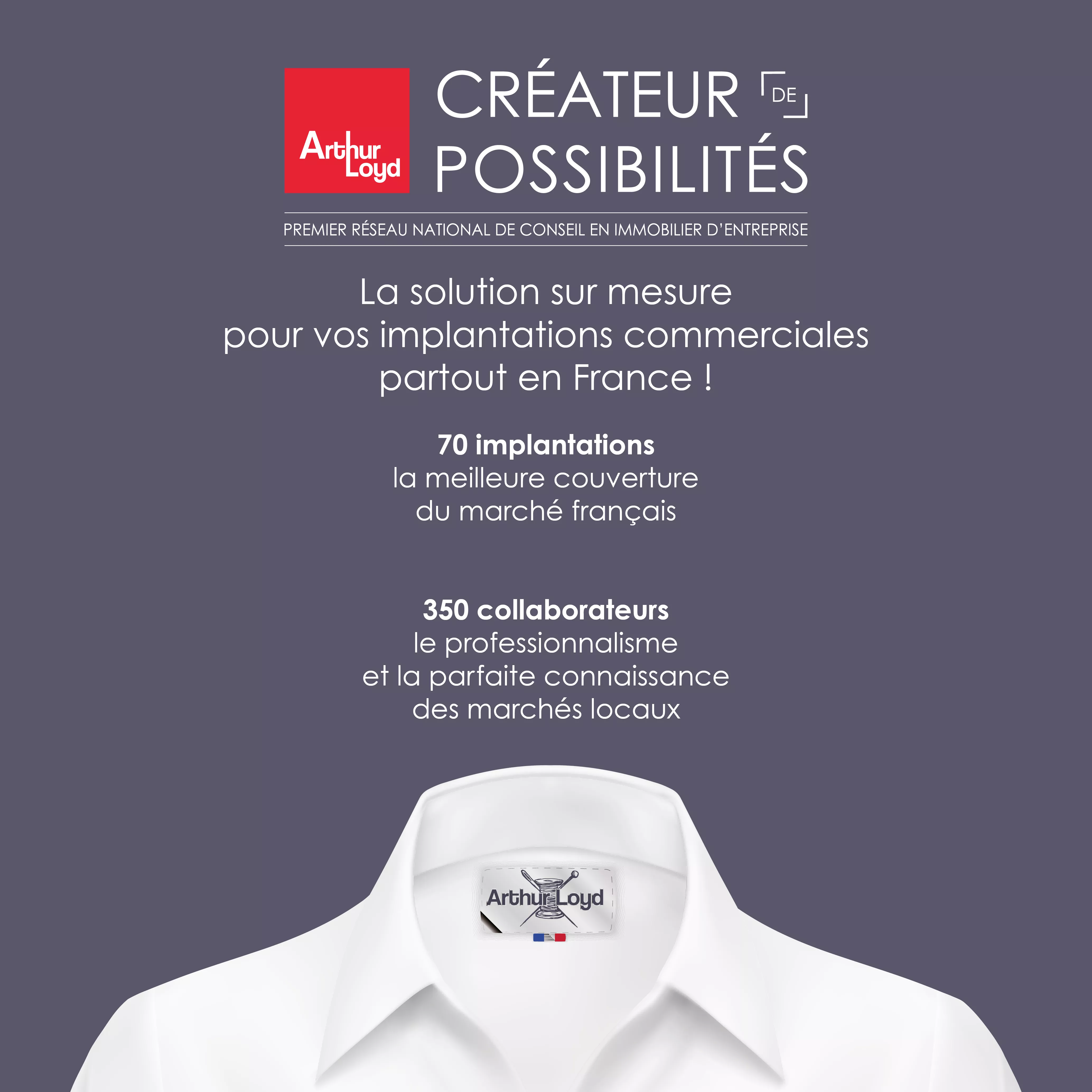 Avec Arthur Loyd, vous êtes assurés de bénéficier de l’ expertise et de l’expérience d’un conseil implanté localement. La force de notre réseau, par sa synergie et sa réactivité, est de dupliquer vos implantations où vous le souhaitez.