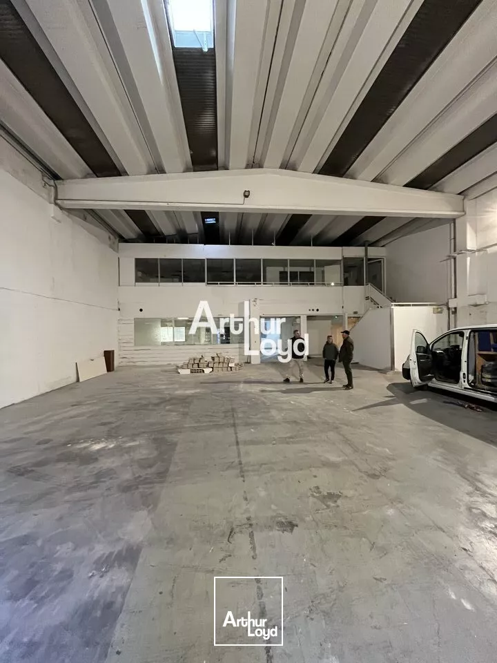 Le rez-de-chaussée offre 388 m² avec une hauteur sous plafond de 6,50 mètres, idéal pour le stockage. À l'étage, une mezzanine moderne et lumineuse de 155 m² est aménagée en bureaux, offrant un cadre confortable pour vos équipes administratives ou de direction.