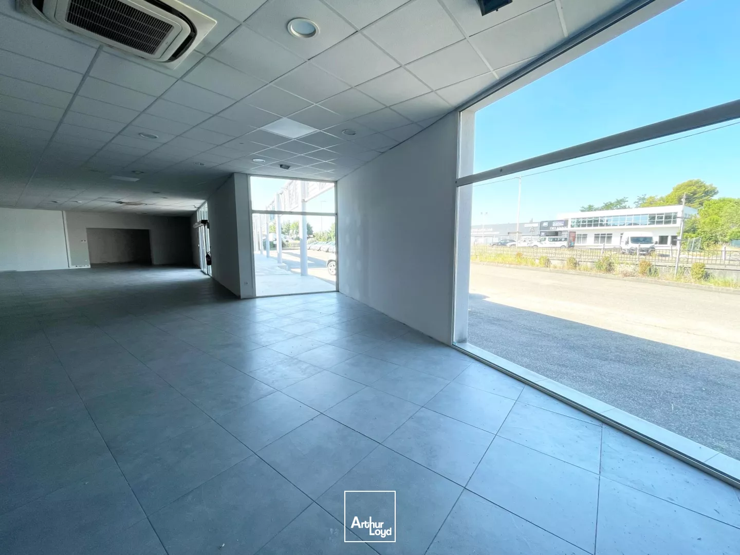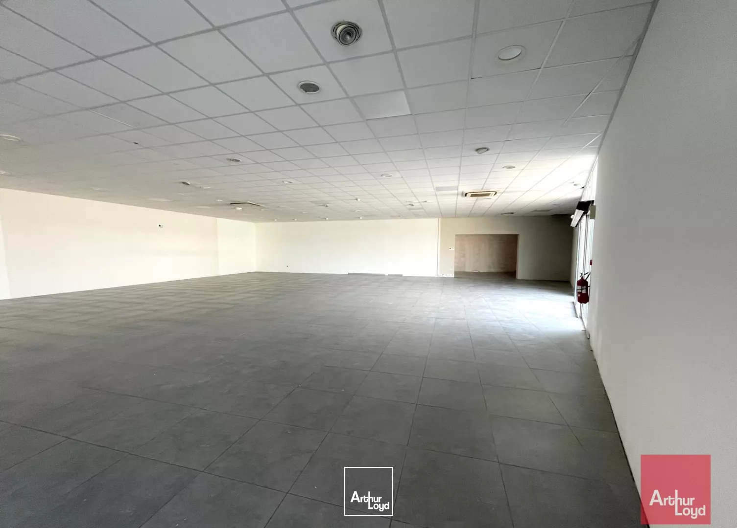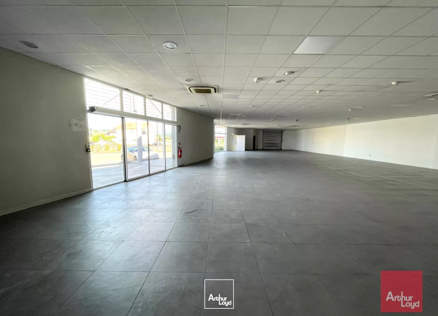 Ce local commercial de plain-pied présente une surface de 422 m², caractérisée par une hauteur sous plafond de 3 mètres, des sols carrelés et une entrée principale dotée de portes automatiques, assurant une circulation fluide.