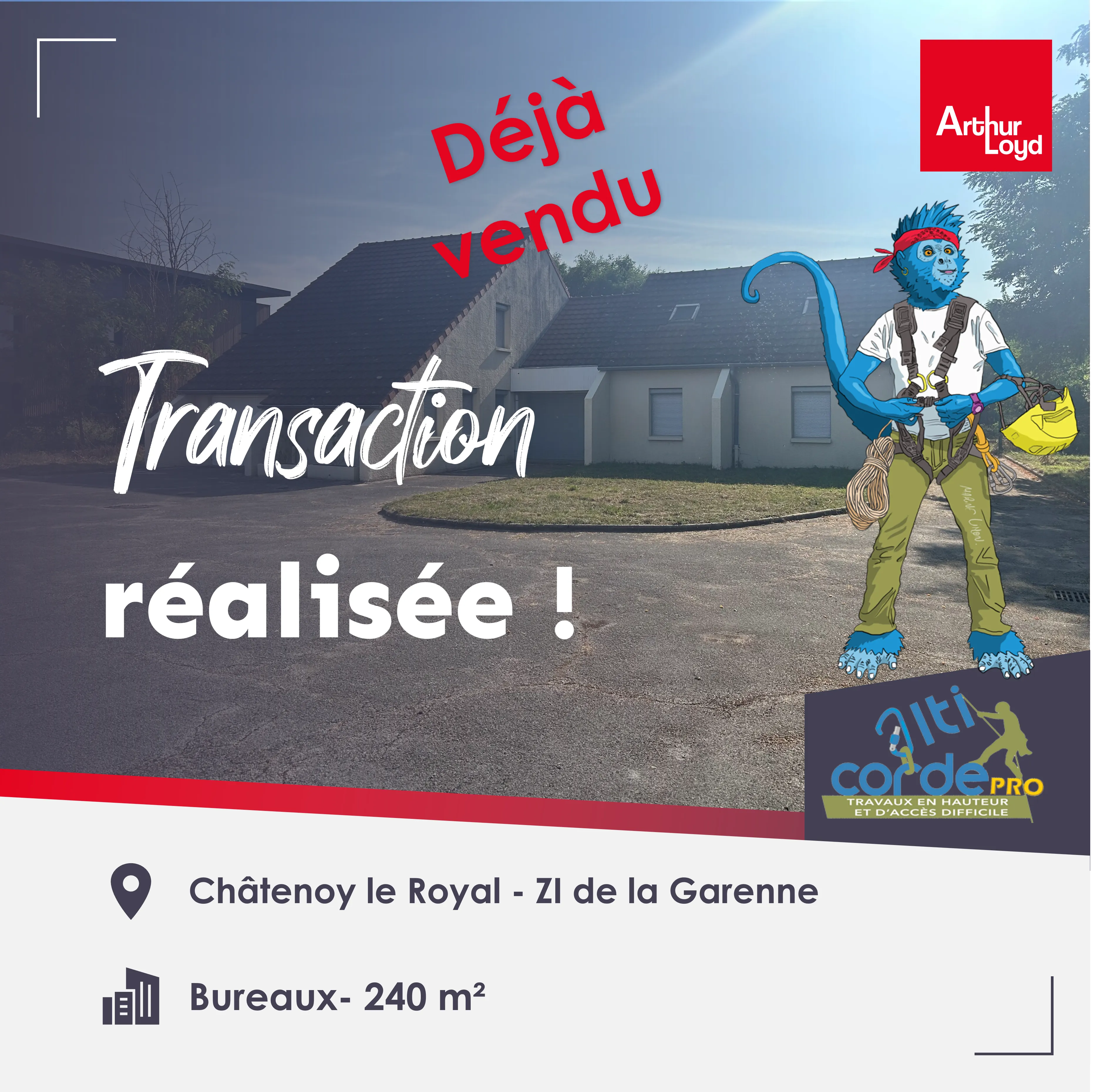 La société ALTICORDE PRO recherchait des bureaux dans le secteur de Chalon sur Saône. Notre équipe a mis tout en œuvre pour trouver le lieu idéal qui correspond parfaitement à leurs besoins en matière de bureaux dédiés à leur activité de tous types de travaux en hauteur, notamment la construction de cabanes, la maintenance de parc aventure et travaux divers en hauteur et accès difficile.