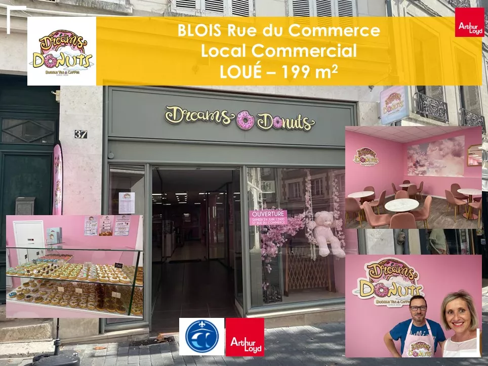 Voilà une nouvelle qui fait plaisir à tous les blésois gourmands/-es fans de donuts, milk-shakes, cafés et autres bubble tea : l’enseigne Dreams Donuts a ouvert ses portes le 24 Juin au 37 Rue du Commerce à Blois dans un local de 199 m² !