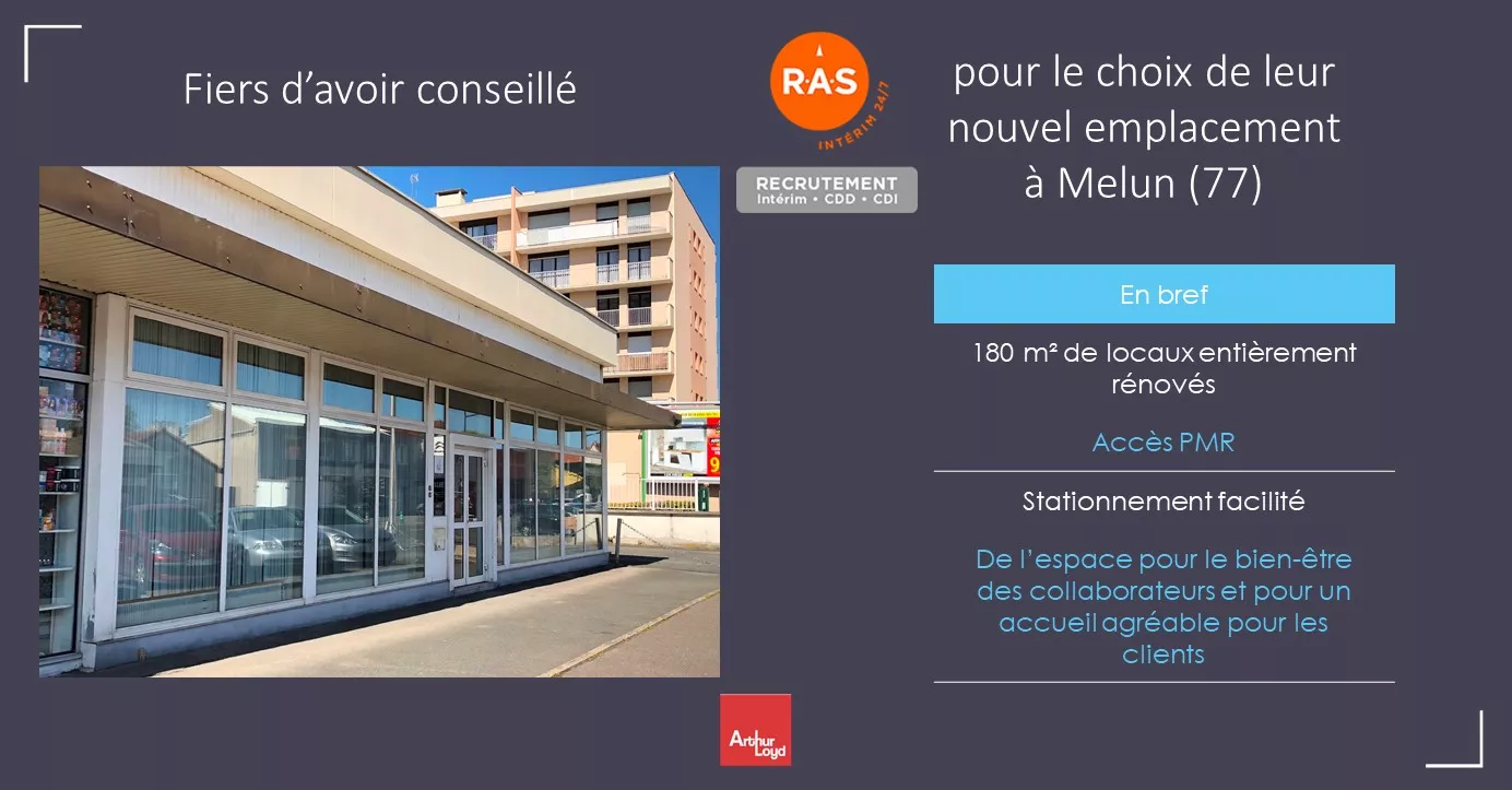 L'expertise d'Arthur Loyd dans le secteur de l'immobilier d'entreprise se confirme une fois de plus avec le conseil personnalisé fourni à l'agence RAS pour leur nouvel emplacement à Melun.